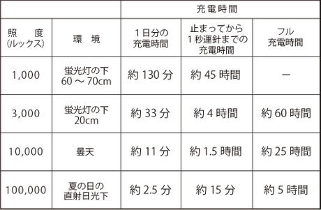 ※1日分の充電時間…時計が1秒運針で1日動かすのに必要な充電時間