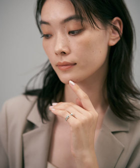 他の指に付けるリングともバランスがとりやすいので、レイヤードスタイルにも活躍。