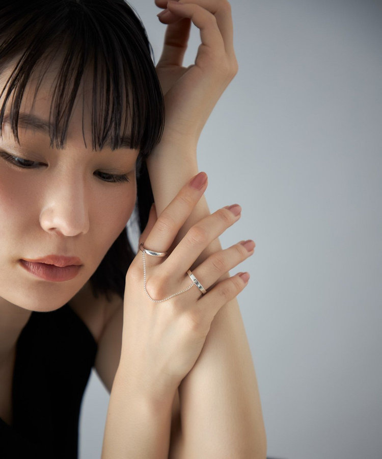 チェーンでつながった2本のリングが、モードでこなれ感のある手元にアップデート。