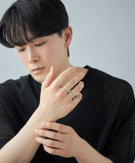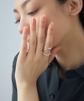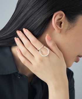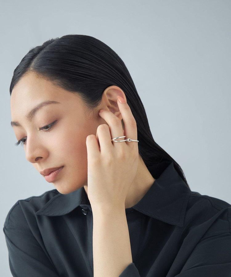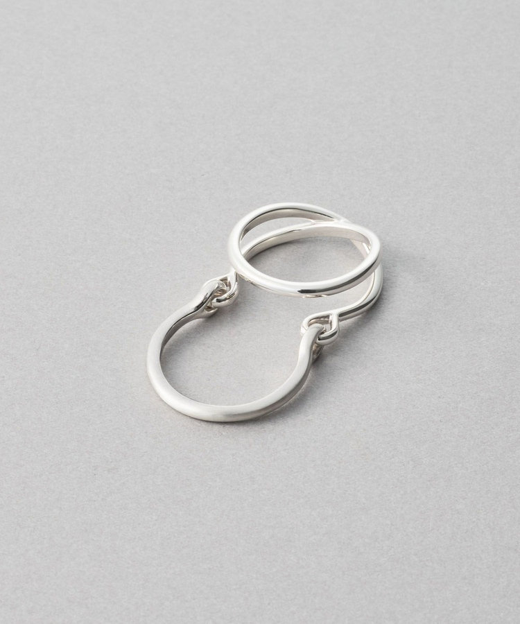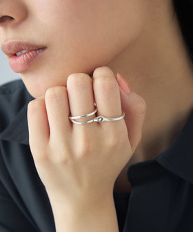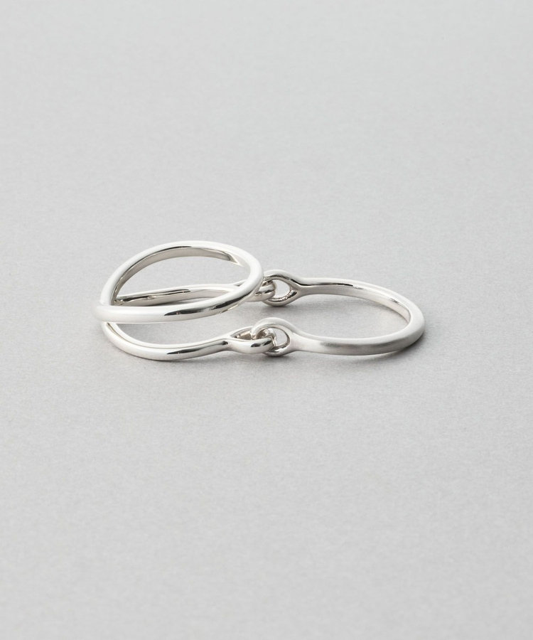 2連リングとプレーンリング、異なるシルエットのリングをドッキング。