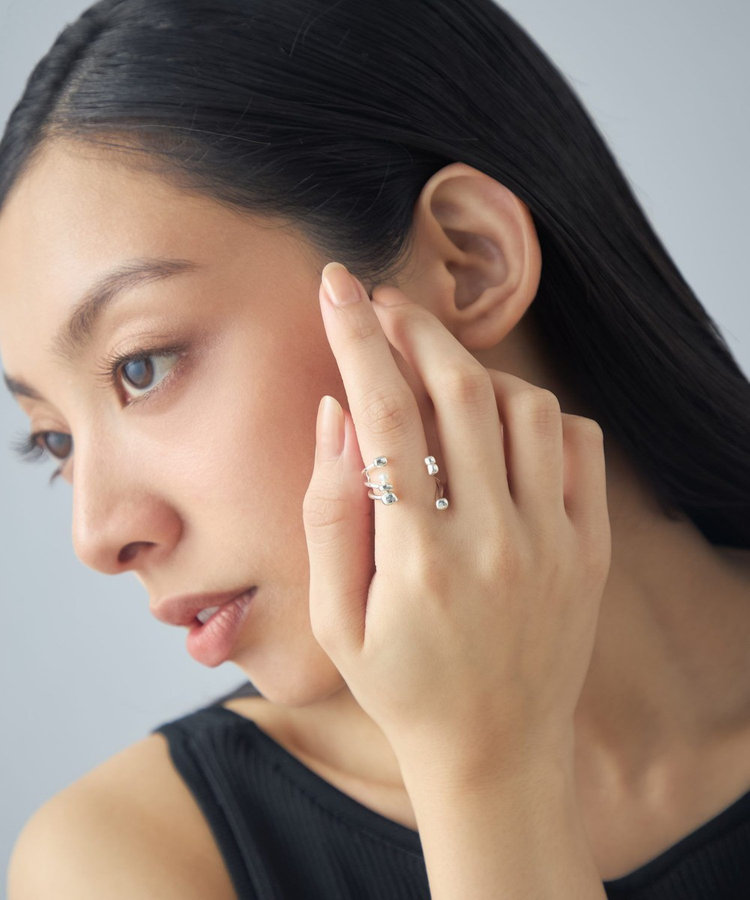 指の間で浮いているようなユニークな見え感で、手もとに遊び心を宿します。