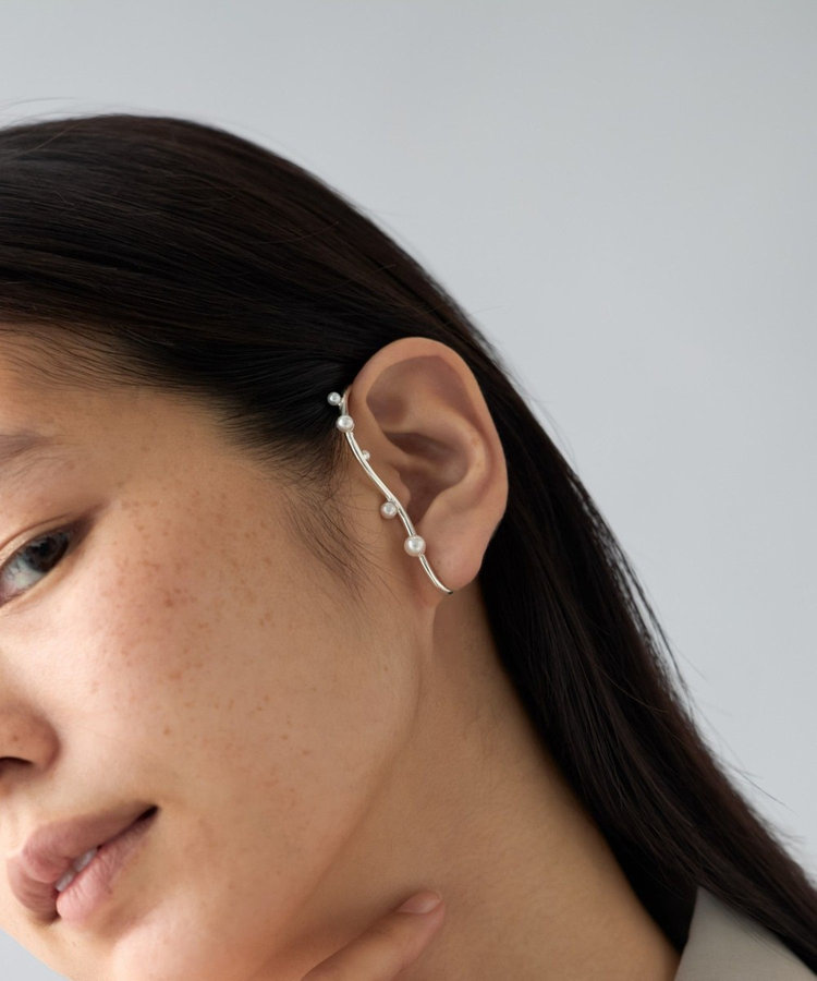 滑らかに描かれる大きな曲線が、耳もとを華やかに彩る「イヤーバングル」。