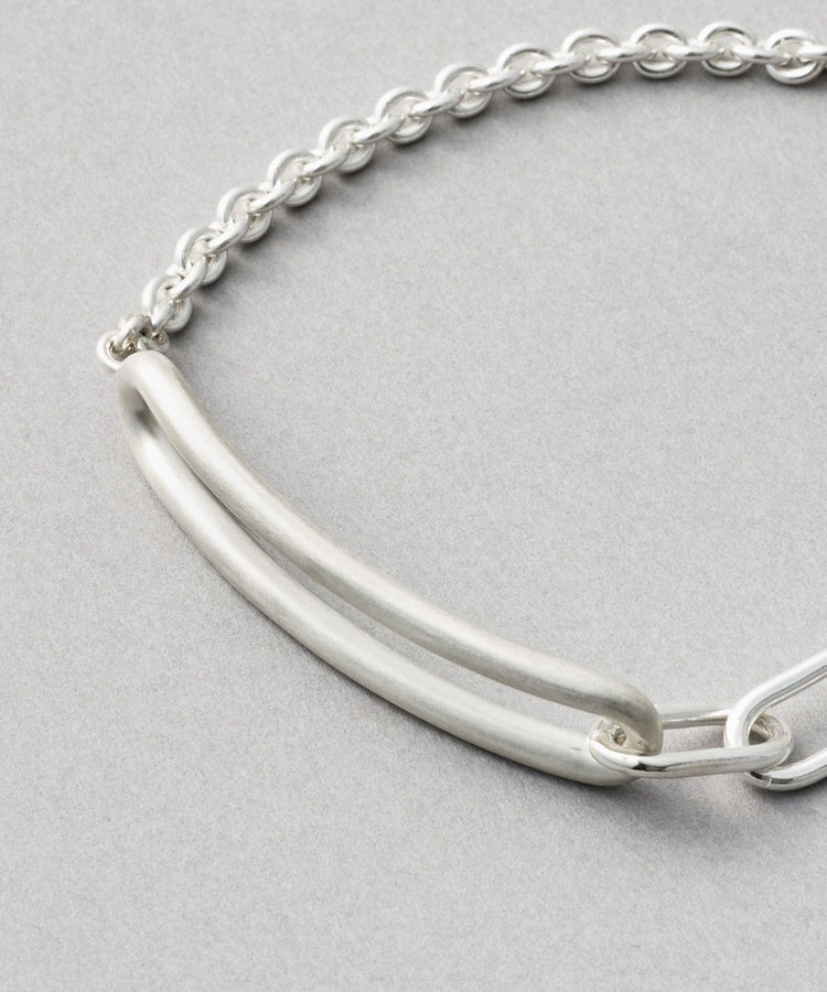 ボリュームチェーンにリンクするようにモチーフを繋げた、無骨なデザイン。