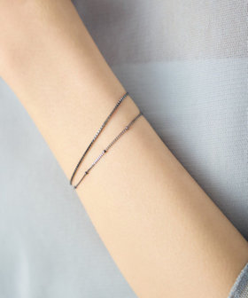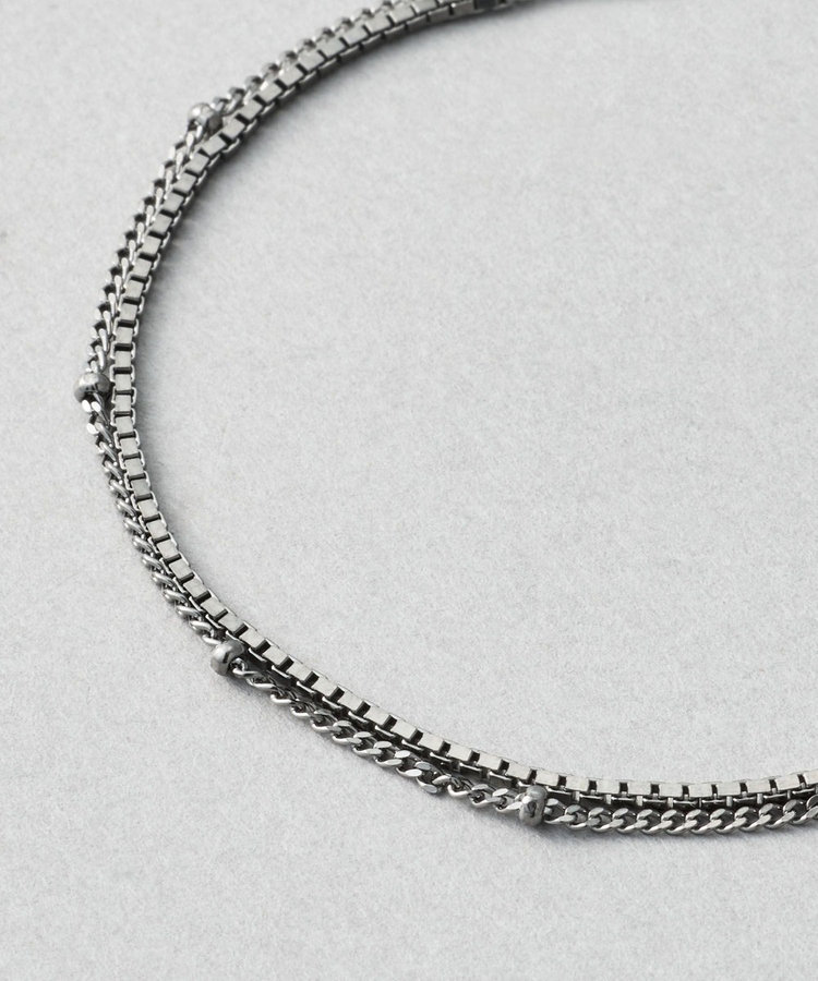 人気のベネチアンチェーンに、リズミカルなデザインチェーンをレイヤードした2連ブレスレット。