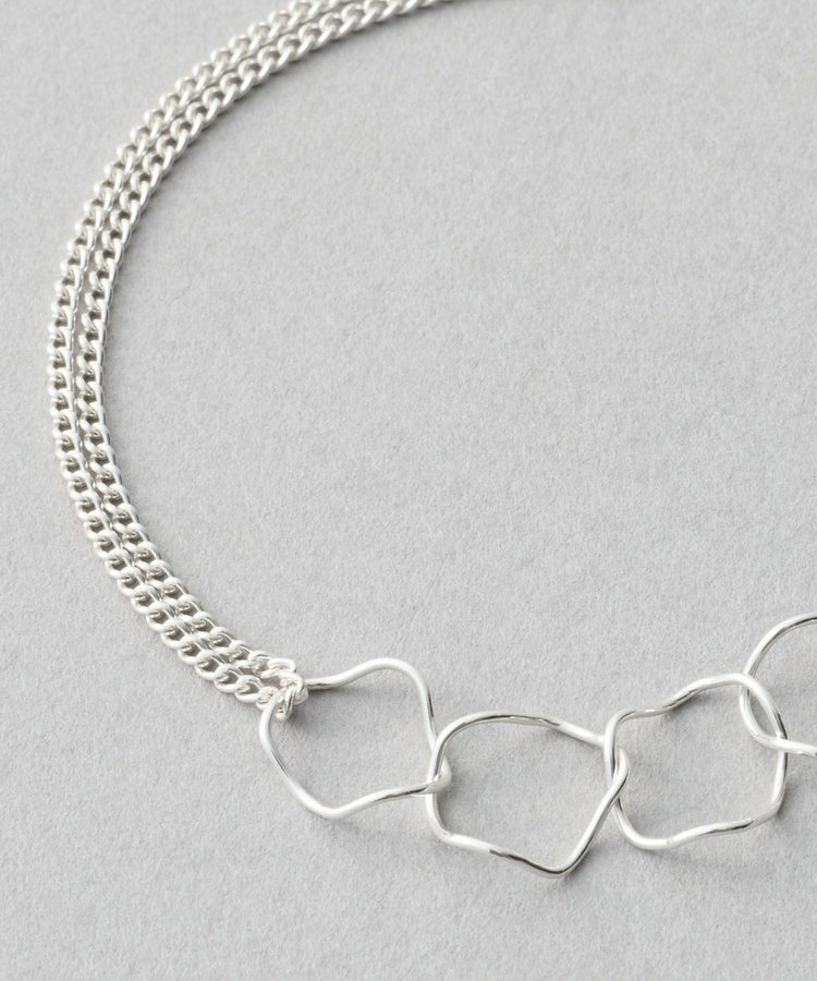 抜け感のある大コマのチェーンに、なめらかなチェーンを通したレイヤードデザイン。