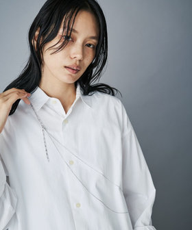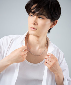 ショートネックレスは程よくボリュームもあり、テンションの違いがこなれた印象を演出します。