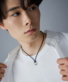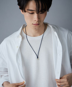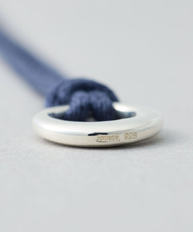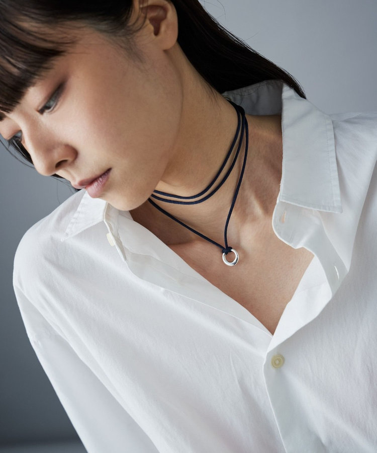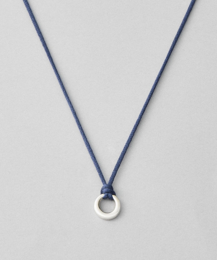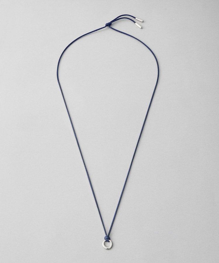 程よく艶のあるネイビーのコードにサークルモチーフを組み合わせたネックレス。