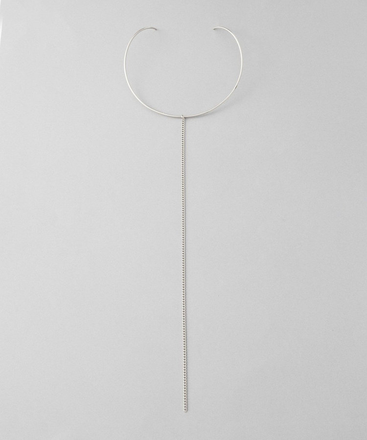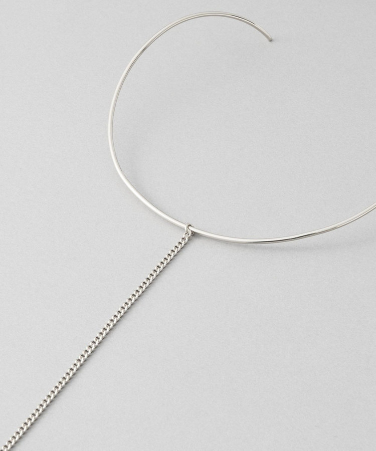 首元に沿うようにゆるやかにカーブしたチョーカーに、一筋のチェーンを垂らした潔いデザイン。