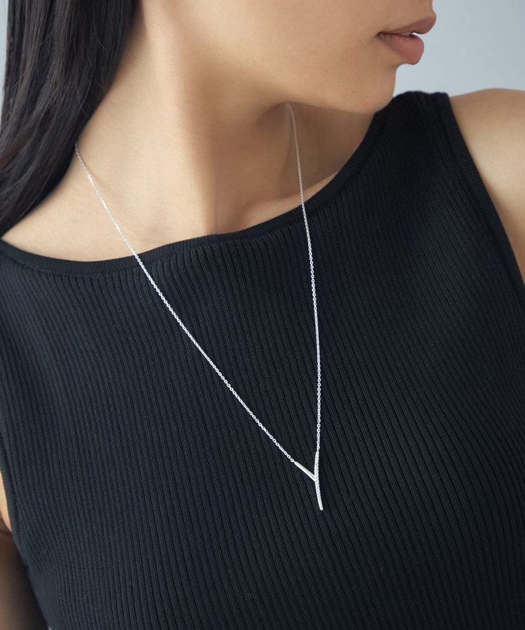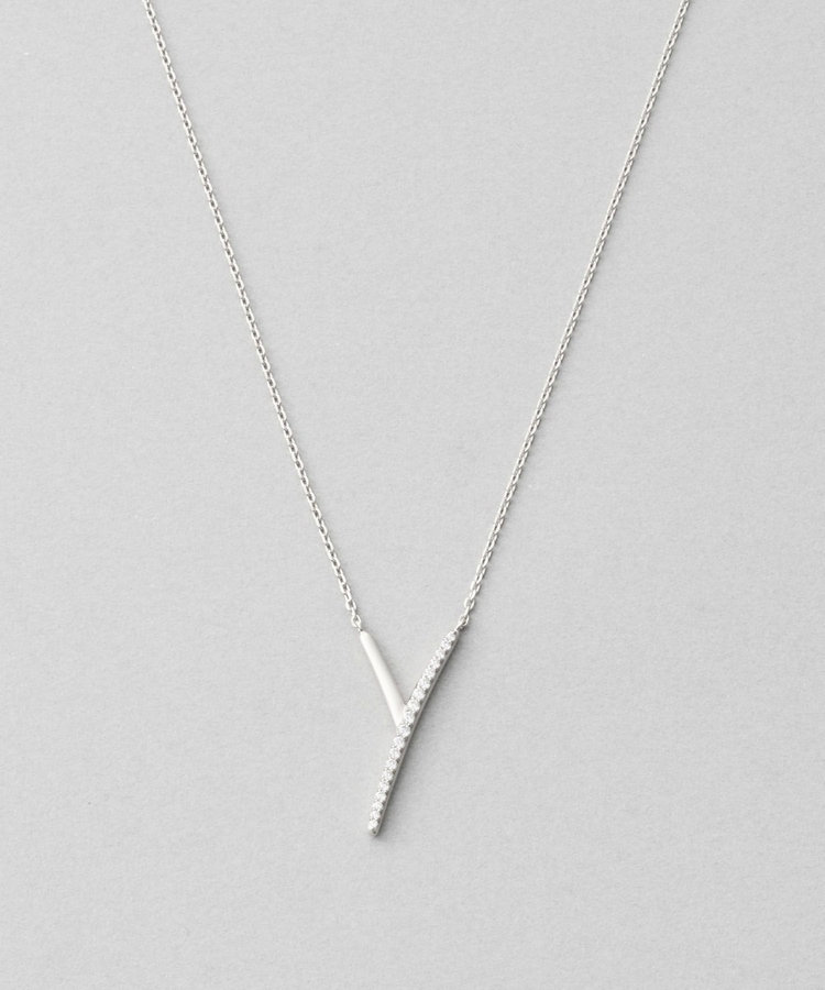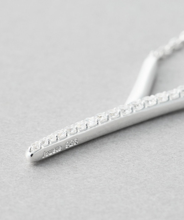 程よく抜け感もあるアシンメトリーなY字モチーフに、グラデーション状にあしらったキュービックジルコニアが華やかなネックレス。