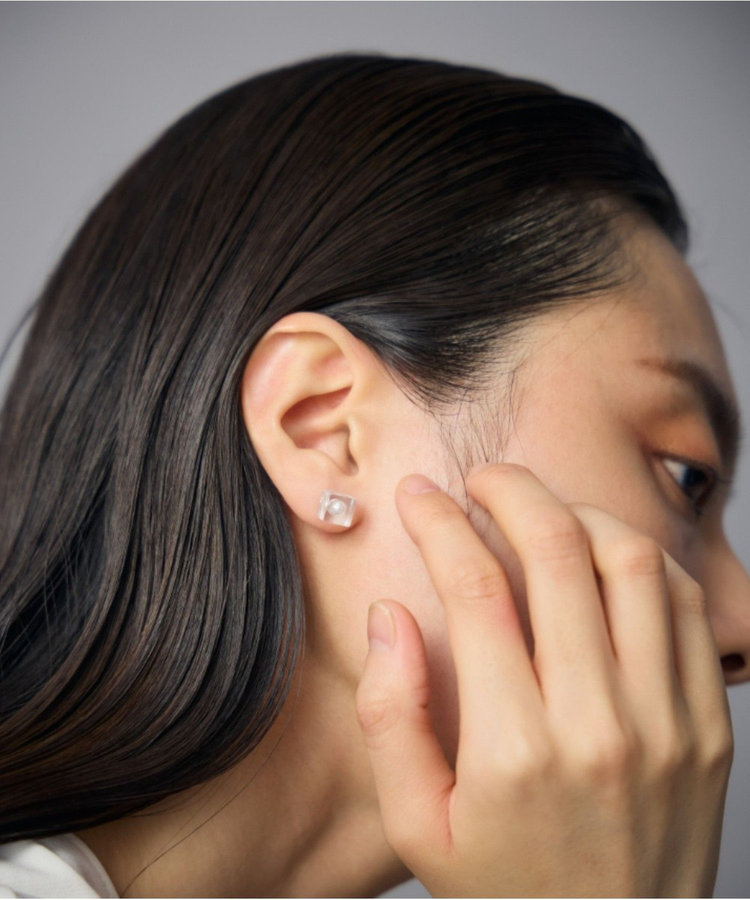 クリアな樹脂にパールを封じ込めた、、瑞々しいデザイン。