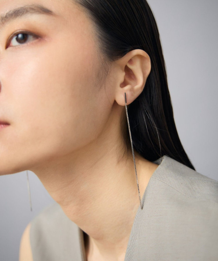 細身のシルエットながらも、ユニークなフォルムが耳元で存在感を発揮する「SVピアス」。
