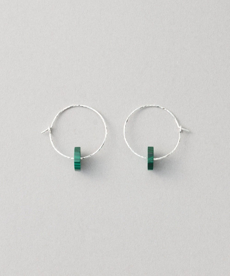 サークルフープにストーンに直接通した、ミニマルな潔いデザイン。