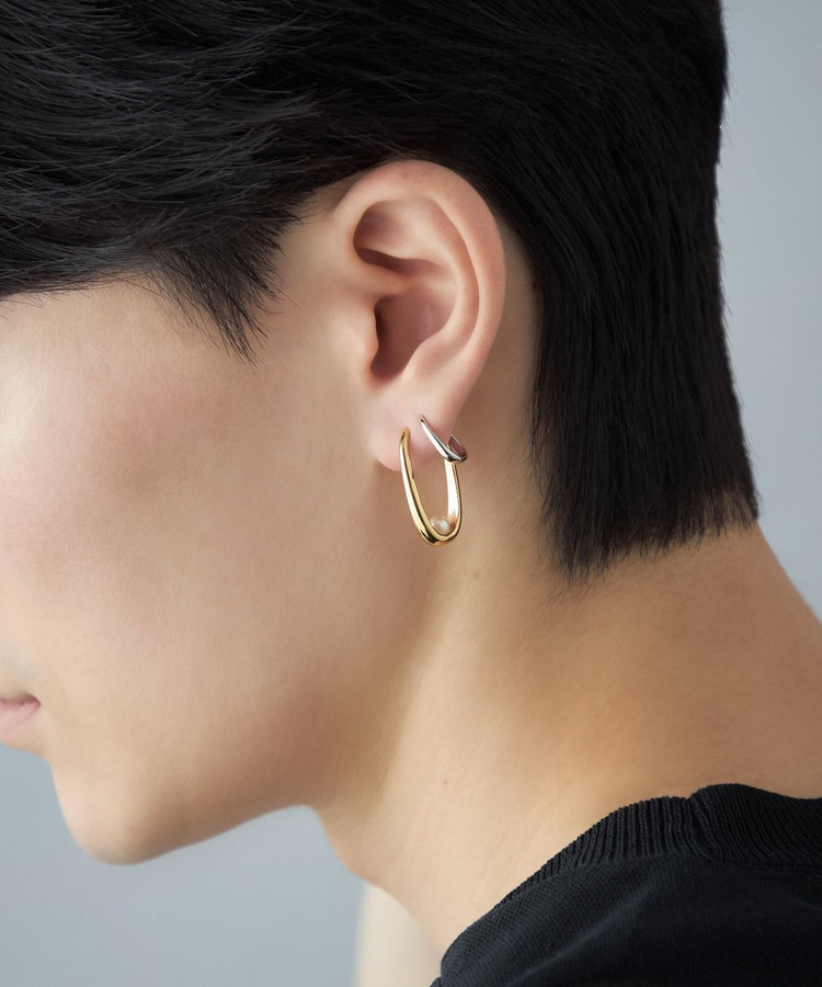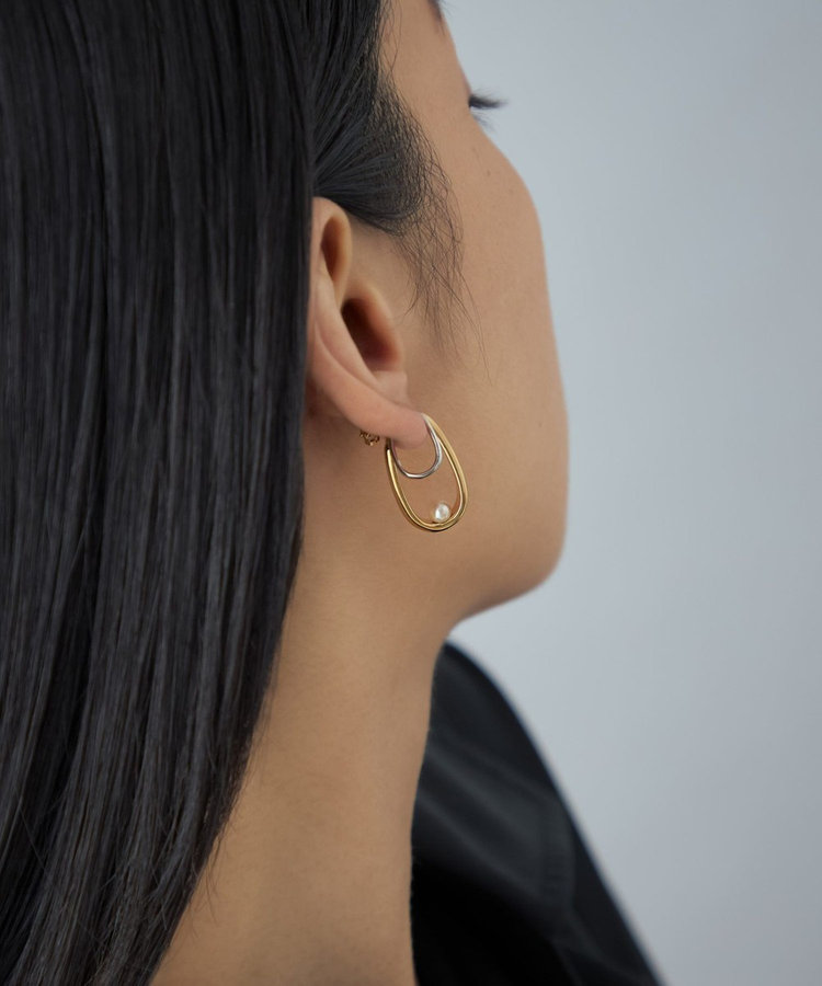 SV925+プラチナ/イエローゴールドコーティング(ニッケルフリー), 貝パール(人工真珠)(ライトベージュ), ポスト・キャッチ:SV925+イエローゴールドコーティング(ニッケルフリー)