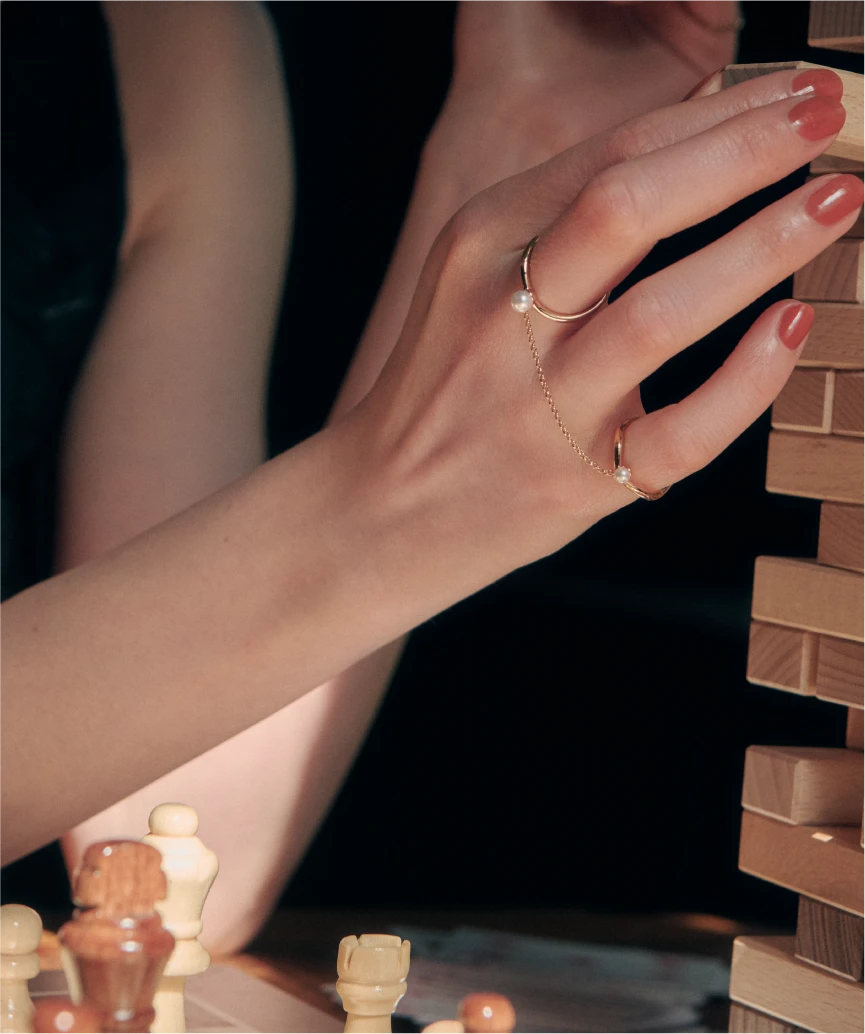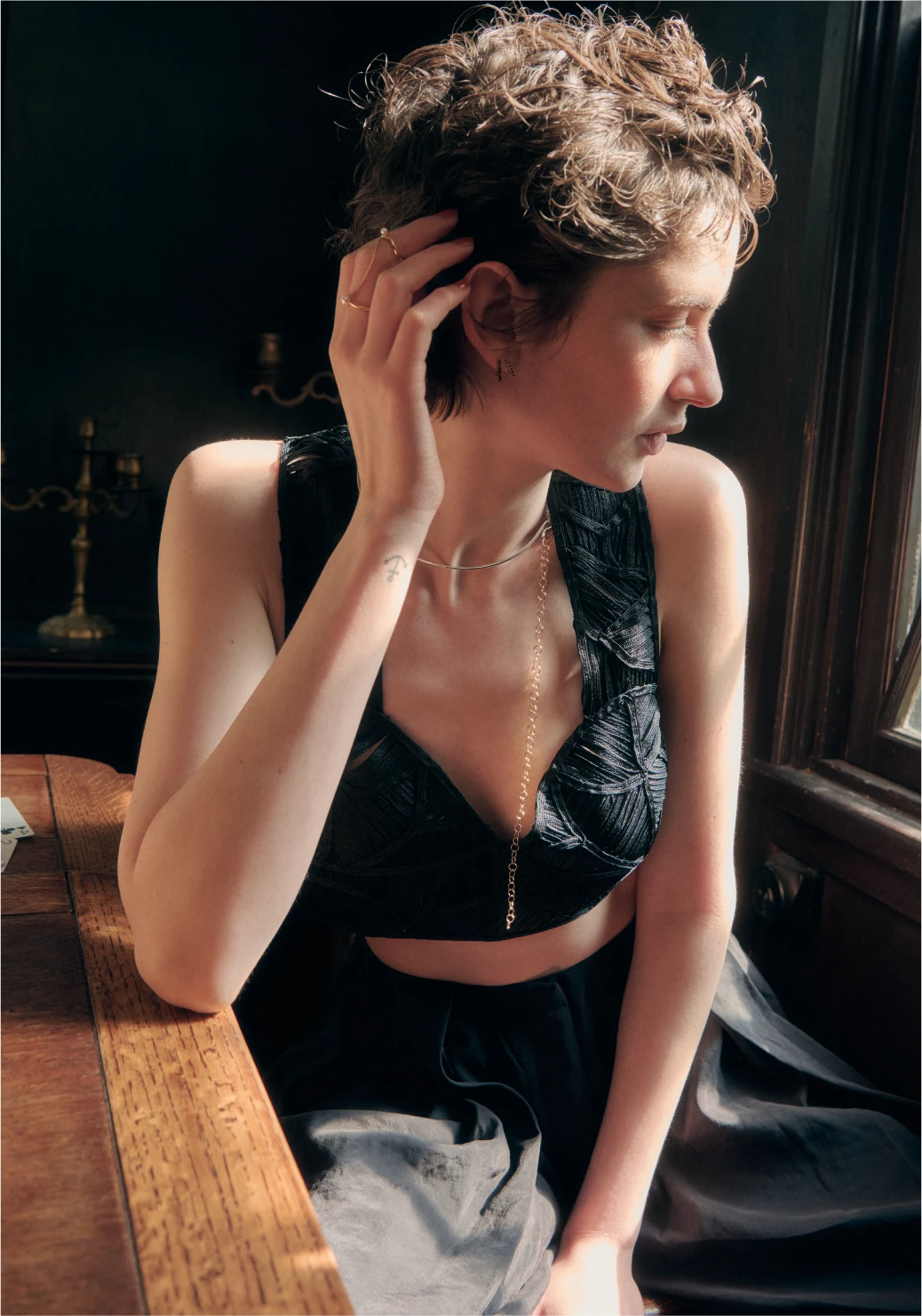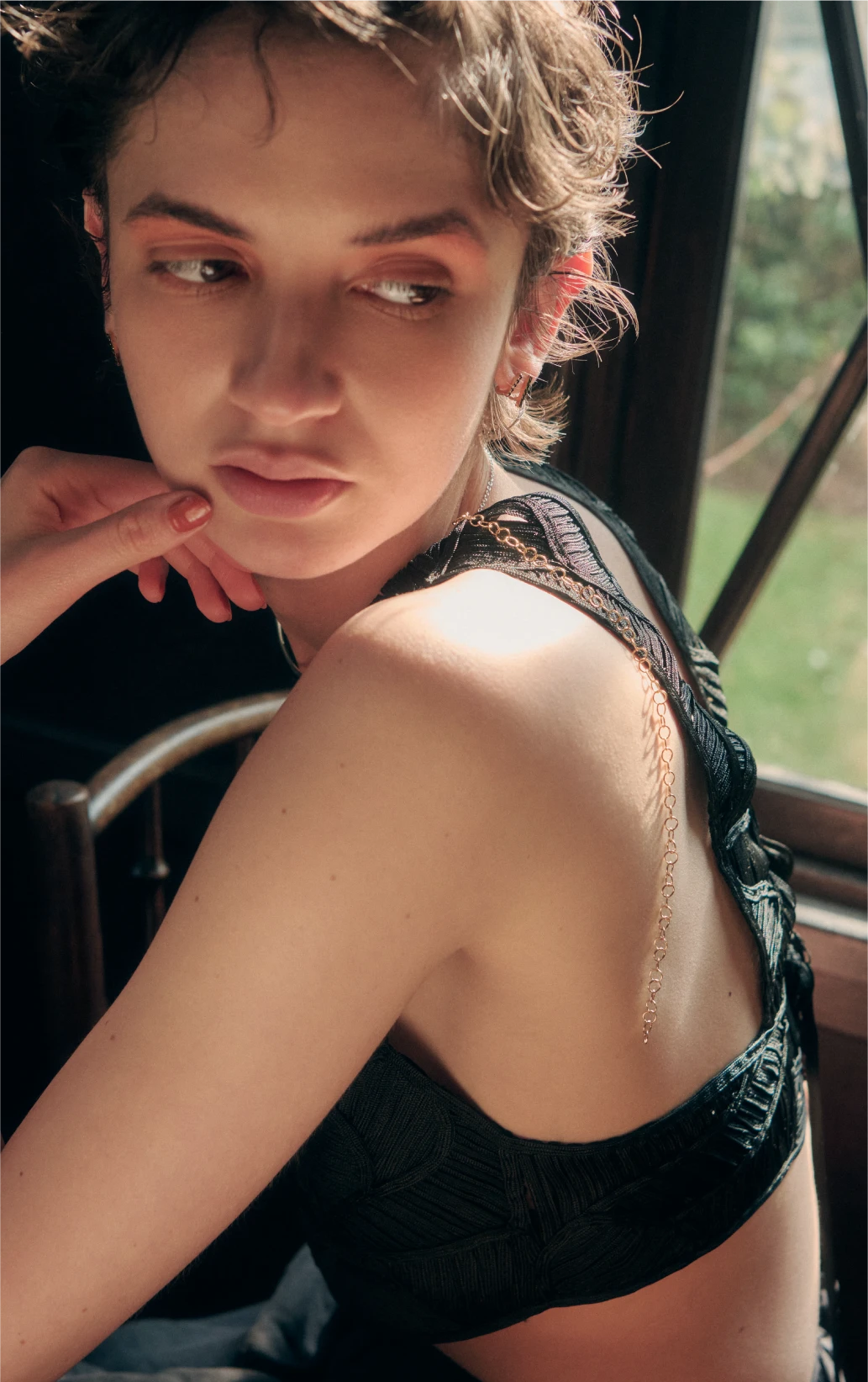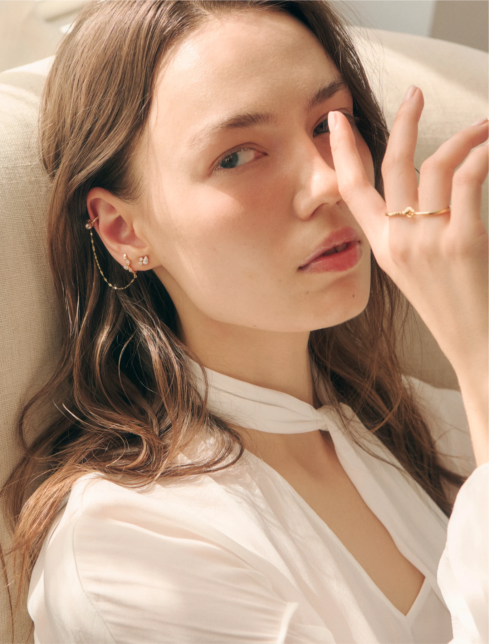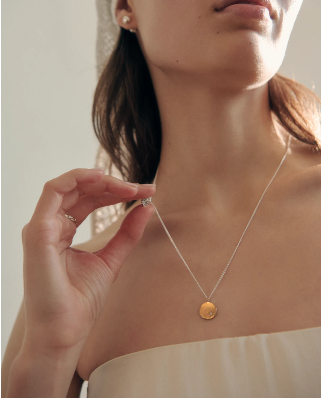with a delicate chain, adding depth,