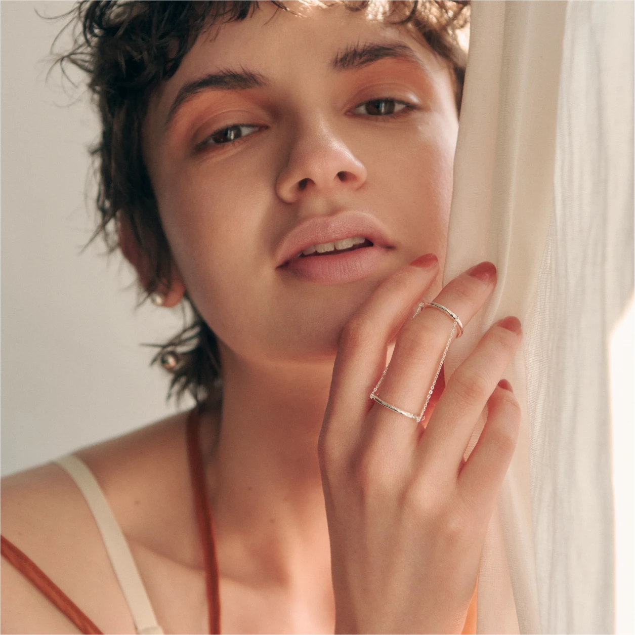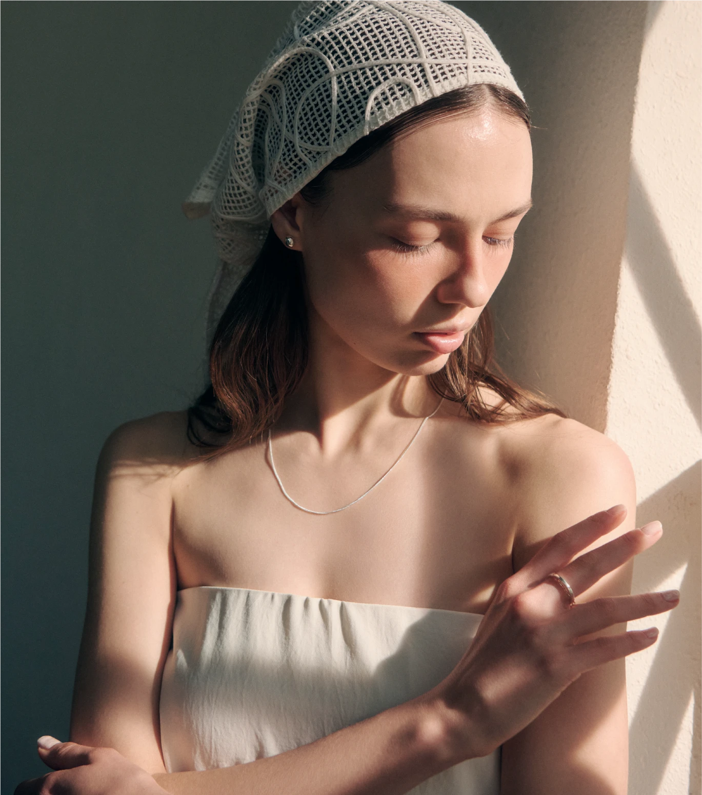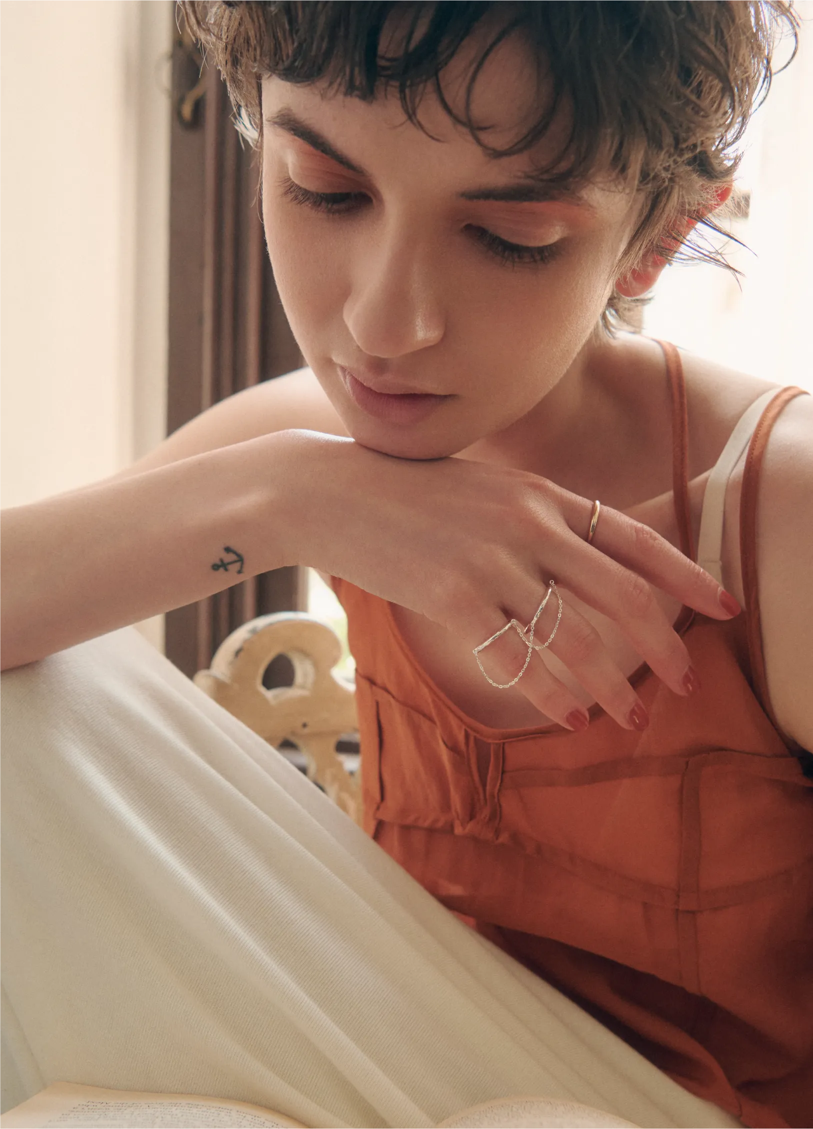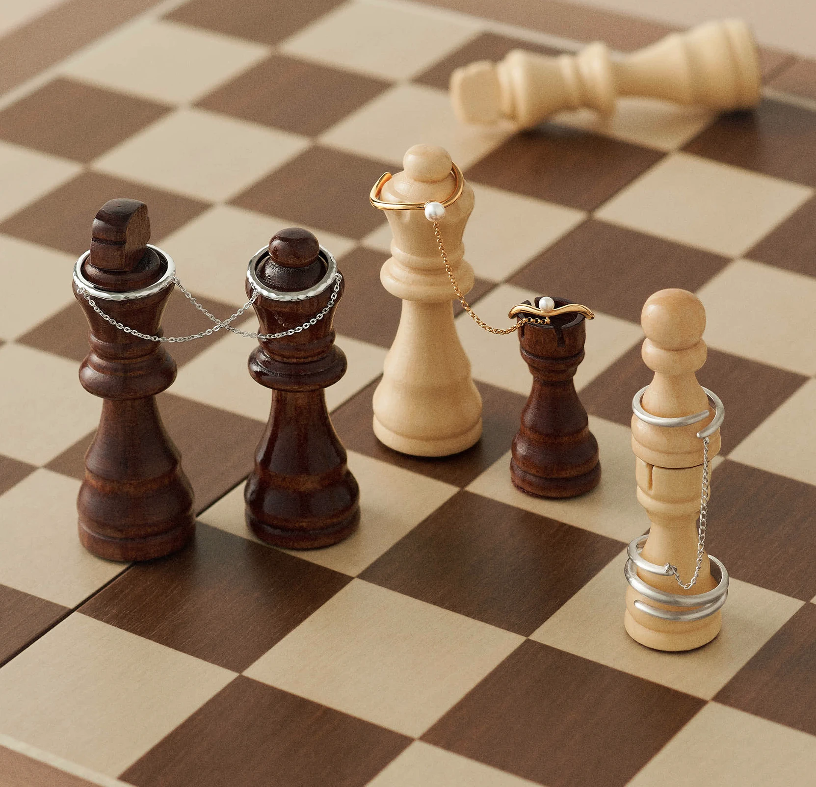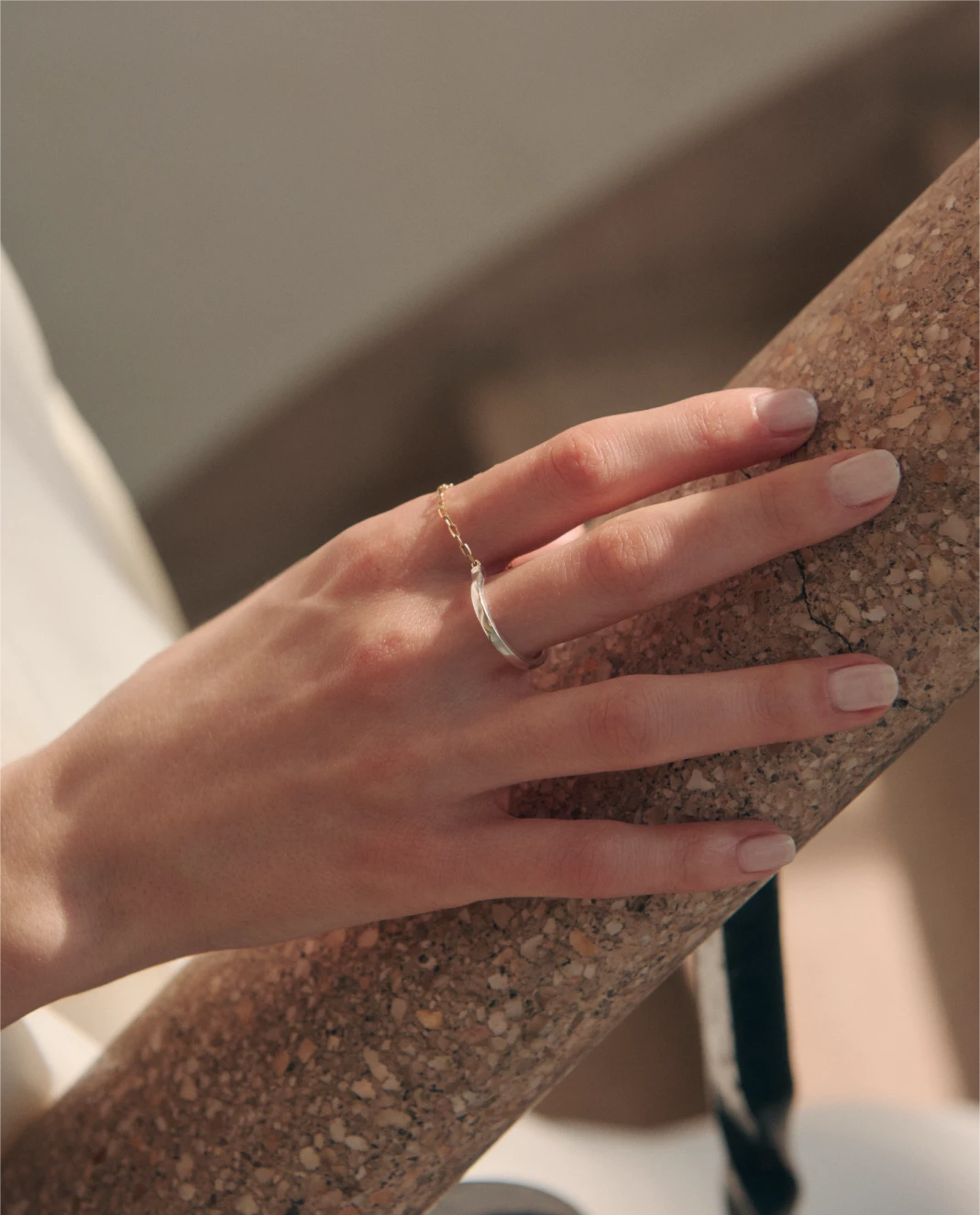 with a delicate chain, adding depth,